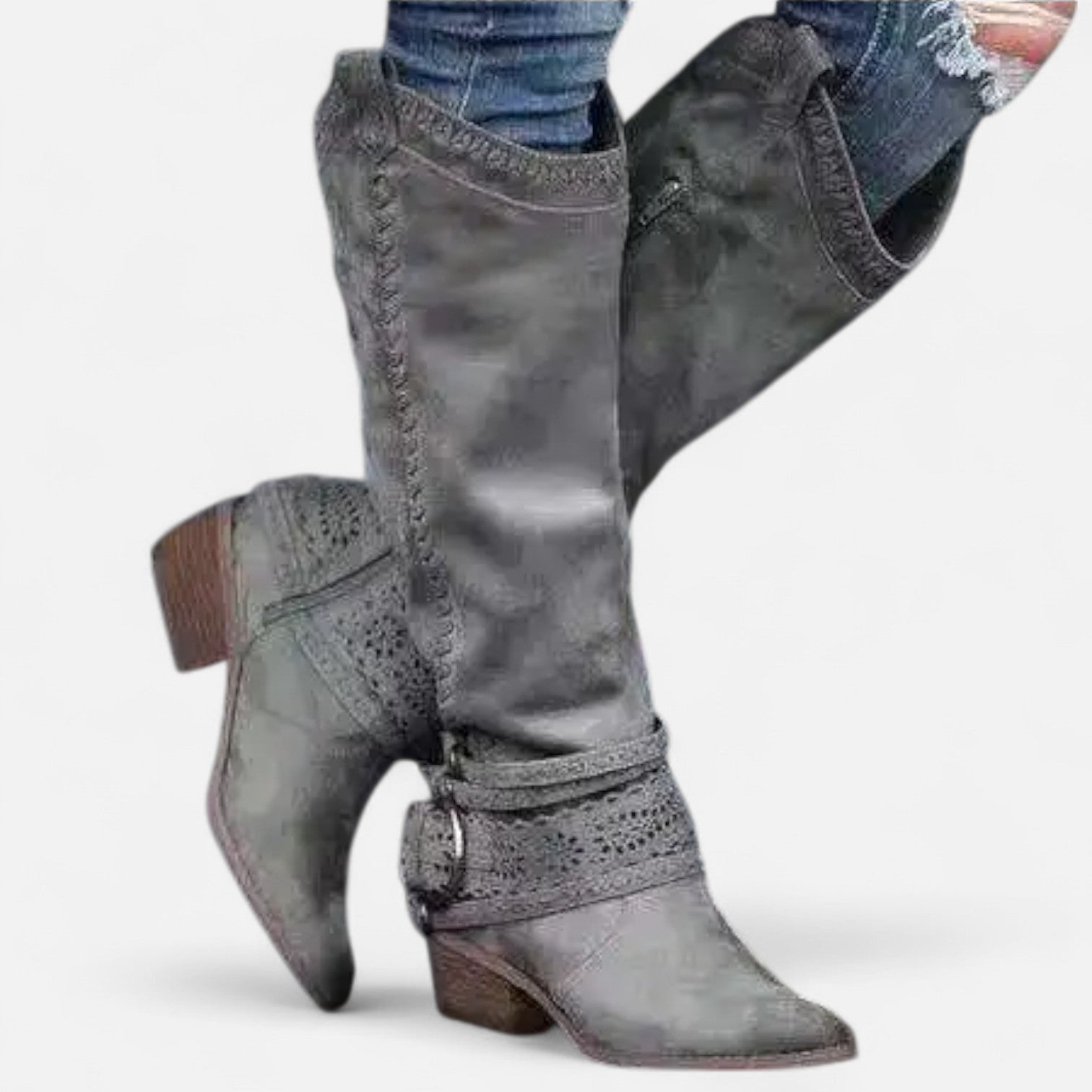Charme de l’Ouest – Une botte emblématique revisitée pour la femme moderne, entre caractère et raffinement.