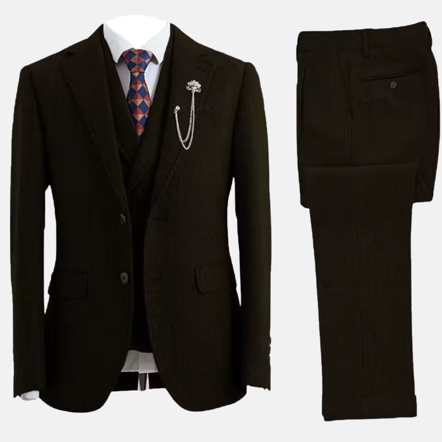 • Design Classique 3 Pièces – Veste, gilet et pantalon parfaitement coordonnés pour une allure distinguée.