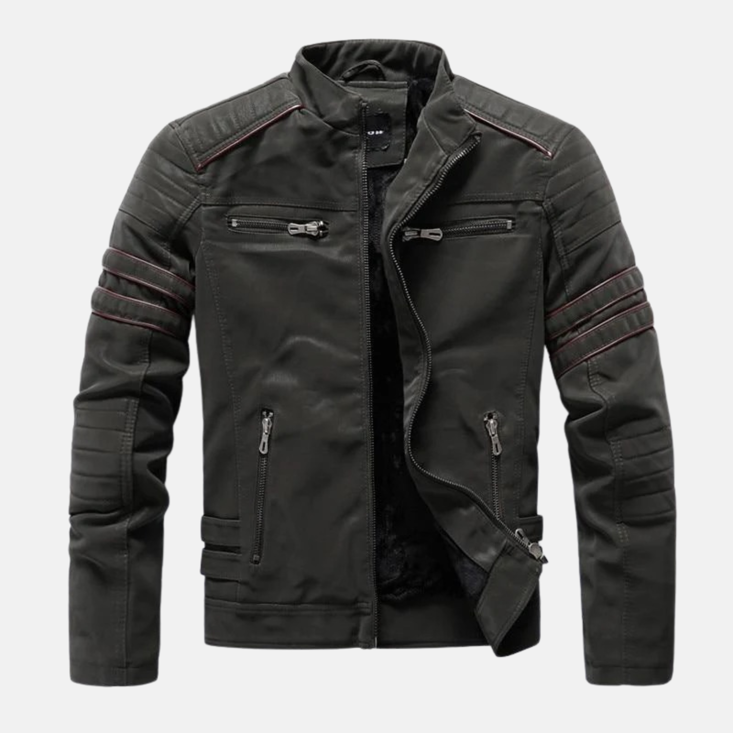 La veste moto Cyprian par Mistrève est l’alliée idéale de l’homme moderne : robuste, élégante et taillée pour affronter la saison avec confiance.